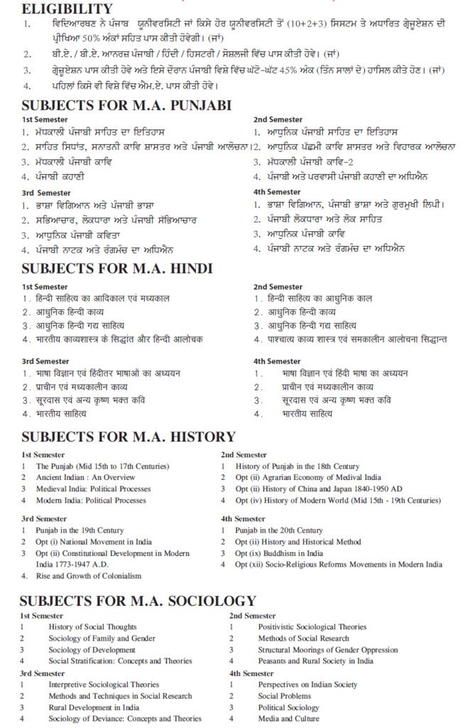 Master of Arts in Punjabi, Hindi, History & Sociology